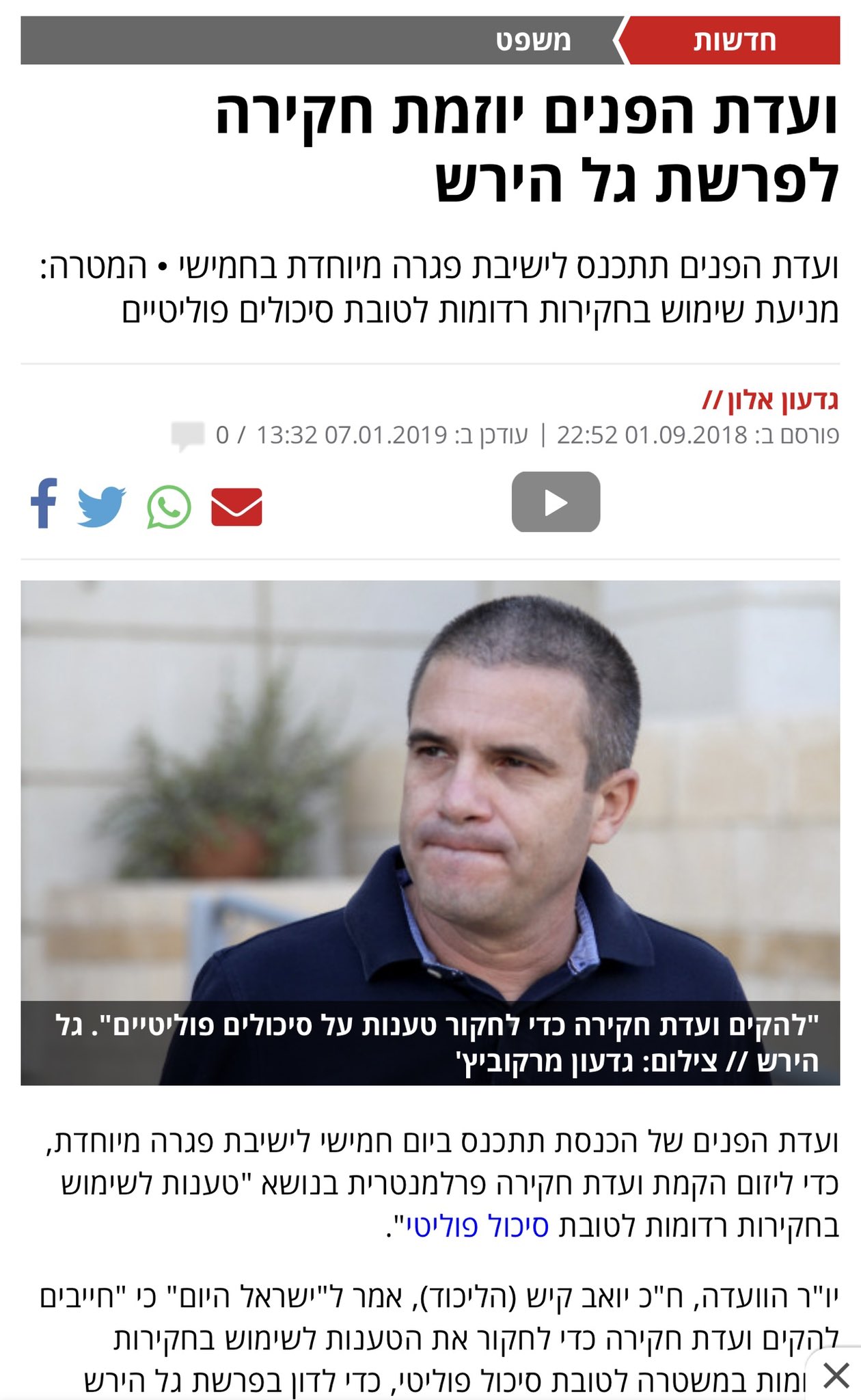 פרשת גל הירש התפוצצה בתקופה שבה התחלפו המפכלים. מדהים שביום בו פרשת גל הירש העניקה לנו תזכורת להתנהלות מעוררת השאלות בהגשת כתבי אישום נגד מועמדים לתפקידים בכירים יש מי שעדיין לא מבינים את הבעייתיות שבחוק שמאפשר לפסול מועמד לראשות ממשלה באמצעות כתב אישום. אם זה קרה לי - זה יכול לקרות גם לכם.
